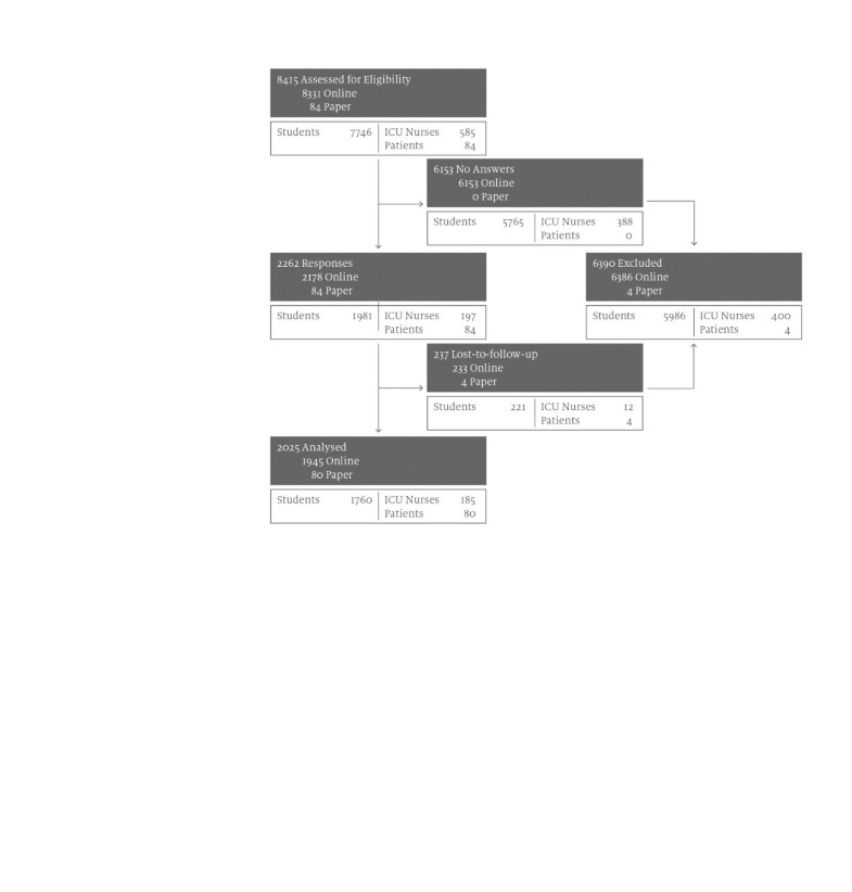 After having answered all mandatory questions the <Save>button had to be pressed and data were captured automatically and stored on a secure server by the software. The number of respondents who had started the survey and the number of interviewees who had finally pressed the<Save>button was counted by the application. When the survey had been closed for responses, data were exported as .csv file and imported into the statistics application. Incomplete data sets recognized by missing end time stamps and/or duration time were excluded from analysis.